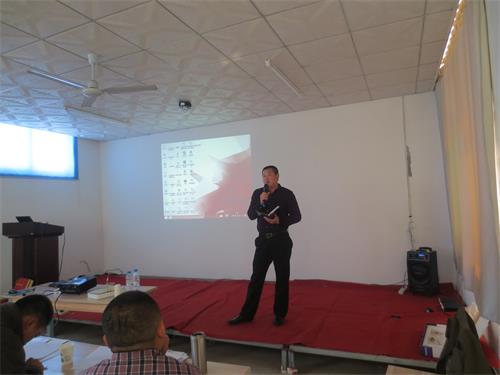 公司王總、范經(jīng)理給市場人員講解公司的研發(fā)動(dòng)態(tài)以及新產(chǎn)品的介紹說明