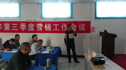 10月15日第三季度營銷工作會議在公司會議室勝利召開,首先營銷總監(jiān)劉瑞祥對奮戰(zhàn)一線的將士們致以真誠的問候和歡迎,劉總將第三季度的銷售情況作了重要匯報,對大家所取得的成績給予肯定,針對銷售中提升點給予了說明,并部署了接下來的銷售目標(biāo)任務(wù),市場上銷售部、技術(shù)服務(wù)部等相關(guān)同志參加了本次會議。