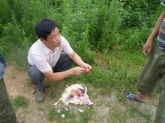 7月19日,公司總經(jīng)理康總、技術(shù)總監(jiān)王總與湖北省京山縣錢場(chǎng)養(yǎng)雞協(xié)會(huì)達(dá)成合作協(xié)議之后,又立刻奔赴湖北蘄春縣一家蛋雞場(chǎng)做技術(shù)指導(dǎo)。經(jīng)過(guò)細(xì)致觀察,耐心尋問(wèn),剖檢,最終找出了發(fā)病原因,及時(shí)將蛋雞場(chǎng)的損失降到了最低。